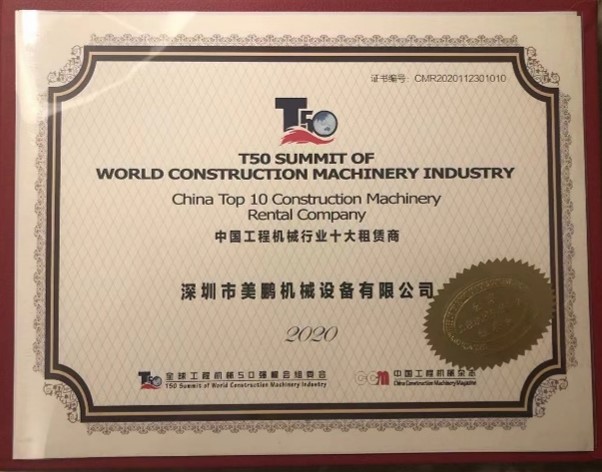 2020年被日立建机(上海)有限公司评为“突出进步经销商”