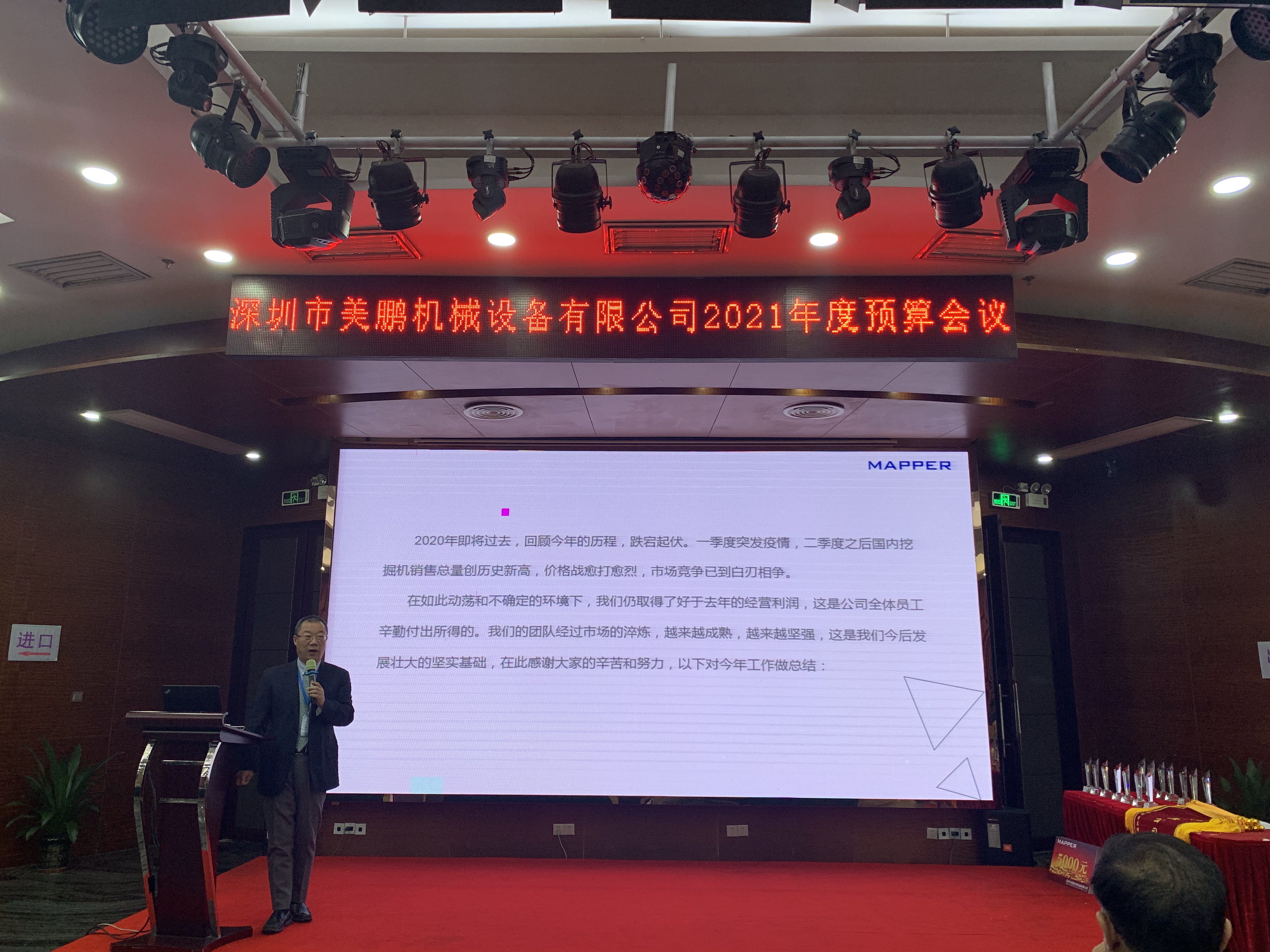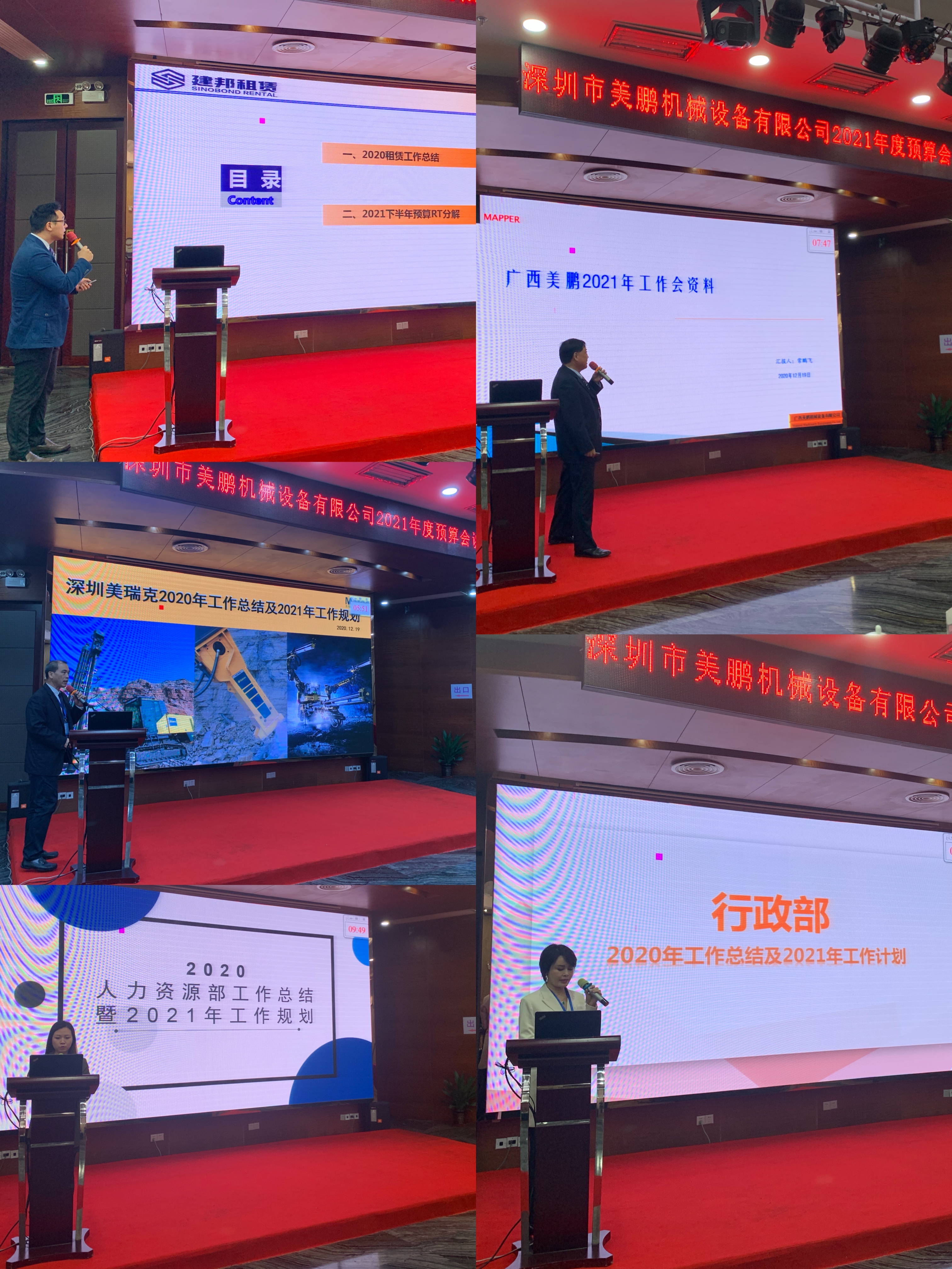 12月19日,美鹏公司在深圳市国汇大酒店顺利召开2020年会。本次议程安排主要包括两个模块:一,2020年工作总结暨2021年预算会议:各体系负责人发表、变革总监张举善及韩总发言;各体系分组讨论;先进人员表彰通报。二,年会晚宴。
